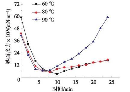圖2溫度對(duì)體系油水界面張力影響