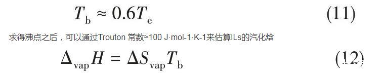 2008年,Verevkin[71]開(kāi)發(fā)了一種基于經(jīng)驗(yàn)公式的簡(jiǎn)單相加法來(lái)計(jì)算ILs的蒸發(fā)焓,該焓被分解為構(gòu)成元素的主要成分和輔助成分的校正(基于結(jié)構(gòu)上的特殊性,例如CF3基團(tuán)或環(huán)狀結(jié)構(gòu)的存在)