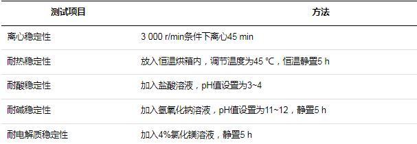 氨基改性硅油柔軟劑根據(jù)紡織物處理需要的不同,接觸到酸堿度、溫度等條件都不同,而無(wú)論是什么樣的條件,都要求氨基改性硅油柔軟劑具有極強(qiáng)的穩(wěn)定性,不能出現(xiàn)水油分離現(xiàn)象。測(cè)試項(xiàng)目如表3所示。