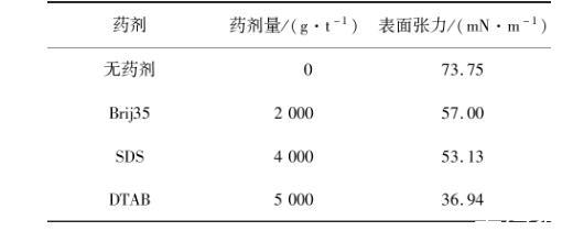 2.4藥劑對煤漿表面張力的影響