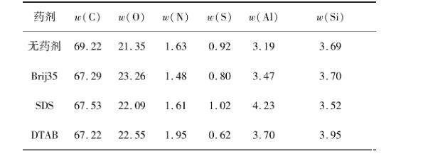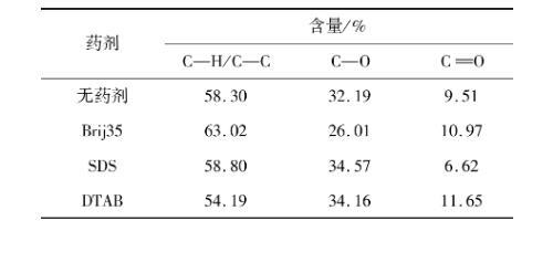 表4藥劑作用前后煤表面元素含量XPS寬掃結果