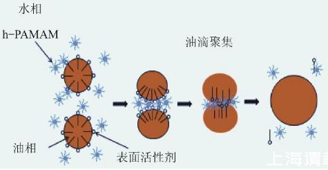 目前,破乳機理還沒有統一的理論,h-PAMAM可能的破乳機理如圖5所示。