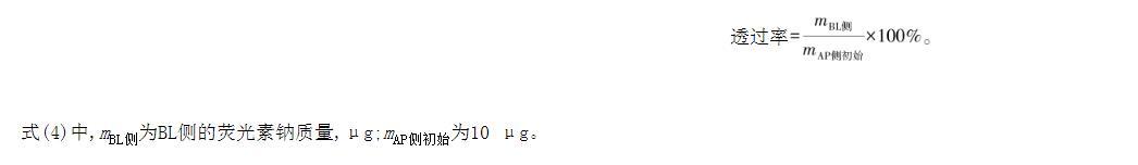 式(4)中,mBL側(cè)為BL側(cè)的熒光素鈉質(zhì)量,μg;mAP側(cè)初始為10μg。