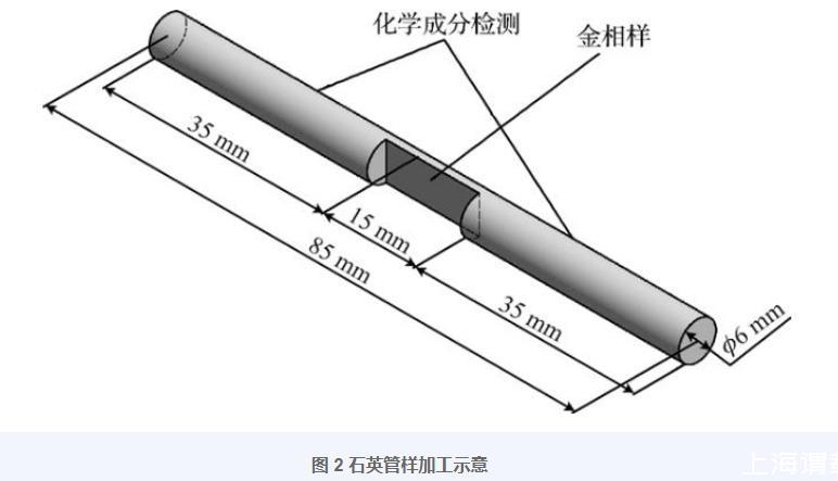 每個石英管樣長度約為85 mm,直徑約為6 mm,試樣加工如圖2所示。取中間位置制備金相樣;取兩頭中光潔度較好、致密度較高的一頭進行表面磨光,車取直徑為4 mm的氧氮氣體棒;最終余料取屑用于分析鋼中剩余主要元素的質量分數。金相樣經過線切割、精細磨拋后,用ASPEX掃描電鏡檢測試樣,并對掃描結果進行分析,統計每個試樣中氧化物夾雜的數量密度和平均尺寸。