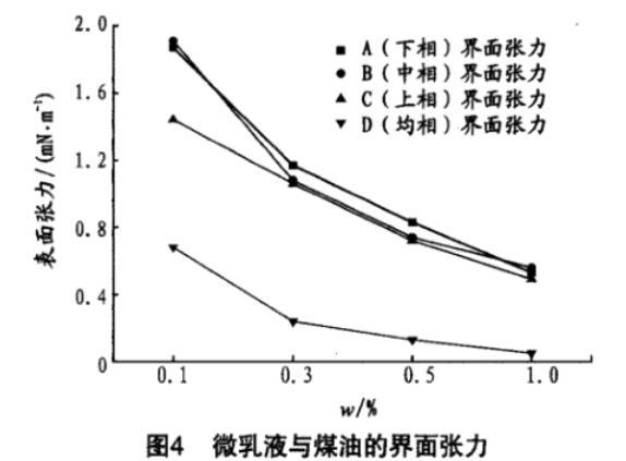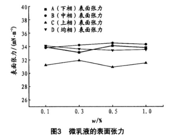 對上述微乳液進行了表/界面張力的測試,結果見圖3。