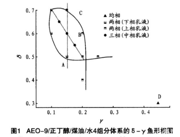 采用魚形相圖對微乳液相行為進行描述,具有直觀明了、簡單實用等特點。