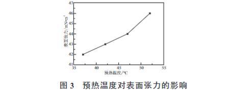 2.4 電暈預熱溫度對BOPP薄膜表面張力的影響
