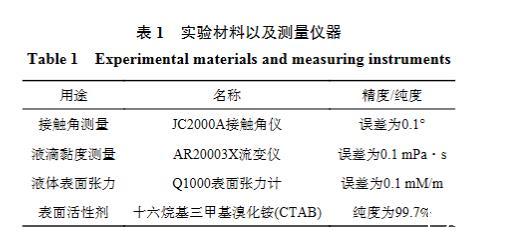 由于固、液兩相的表面特性會顯著影響固?液接觸角,從而影響液滴與顆粒的碰撞行為,筆者通過實驗測量和文獻分析,對比了固、液特性的變化對接觸角的影響。表1列出了測量固、液特性時所使用的具體儀器及添加劑。表2給出了不同固體和液體樣品的接觸角、表面張力和黏度。其中高度疏水固體ST1與不同液體接觸角通過實測得出,中度疏水固體ST2和親水固體ST3的測量數(shù)據(jù)來自ZHU等的研究。對比后發(fā)現(xiàn),前進接觸角α明顯大于后退接觸角β,所以在分析塵?霧濕潤特性時應(yīng)考慮前進角和后退角的差異。