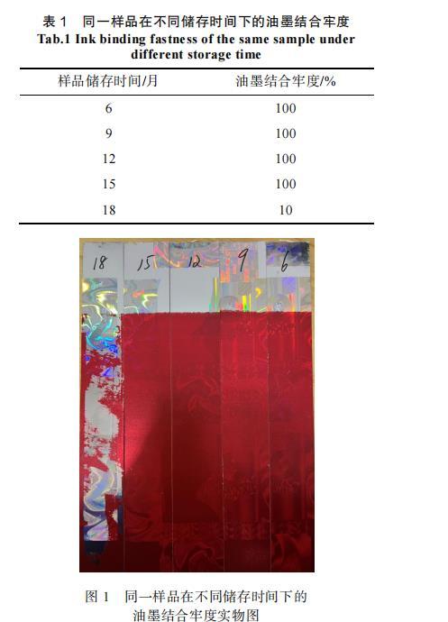 表1同一樣品在不同儲存時間下的油墨結合牢度