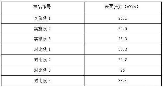 1、抗鹽性測試:配制高鹽模擬鹽水:礦化度32000mg/L,Ca2+、+Mg2+為1500mg/L;收集上述實施例1-3以及對比例1-2中制得的表面活性劑組合物,采用高鹽模擬鹽水將其配置成質量濃度為0.3%的表面活性劑組合物溶液,根據《SYT 5755-2016壓裂酸化用助排劑性能評價方法》中的方法測量溶液與原油(黏度為12mPa·s,溫度為45℃)之間的界面張力,測量溫度為25℃。