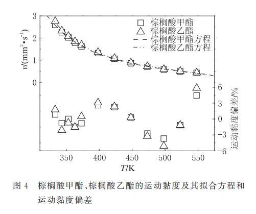 表8 棕櫚酸甲酯、棕櫚酸乙酯運動黏度方程(6)的擬合系數