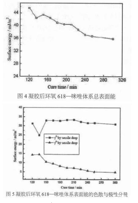 因此作者推斷環(huán)氧618-咪唑體系固化反應120min之后表面能極性分量的降低是由于羥基關能團和環(huán)氧官能團的變化引起。