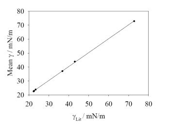對上述數(shù)據(jù)進(jìn)行了線性擬合(下圖),相關(guān)系數(shù)可以達(dá)到0.999,證明了在整個表面張力范圍內(nèi)Kibron傳感器的極好的準(zhǔn)確度。
